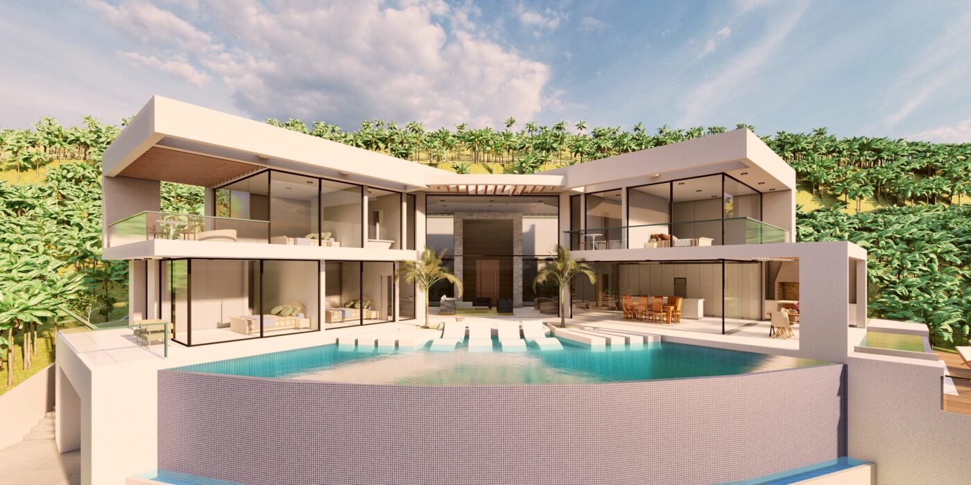Our luxurious and exquisite designs strive to be harmonious with the surrounding nature. Allowing the external facade of your home to embrace its natural landscape by the creative use of a mixture of natural colour tones, natural contrasting materials, large open glazing to maximise the awe-inspiring views and strategic planting of beautiful trees, shrubs and flowers.
